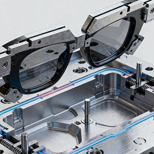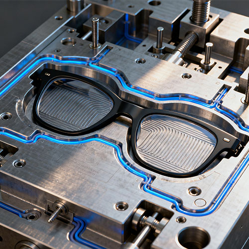 เพื่อตอบสนองต่อความต้องการในการผลิตกรอบแว่นตาจำนวนมาก การออกแบบแม่พิมพ์จึงเน้นย้ำถึงประสิทธิภาพสูง: